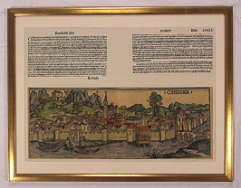 Kolorierter Holzschnitt von Konstanz aus der Schedel’schen Weltchronik von 1493.