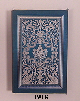 Hellblaue, silbergeprägte Seideneinbände, die Rücken teilweise ausgebleicht, etwas bestoßen, Silberschnitt. Auf der Vorderseite das Wappen der bayerischen Königsfamilie. Jede Ausgabe am Einband innen mit dem gemeinschaftlichen Ex Libris "Bibliothek Paz und Ludwig Ferdinand von Bayern."