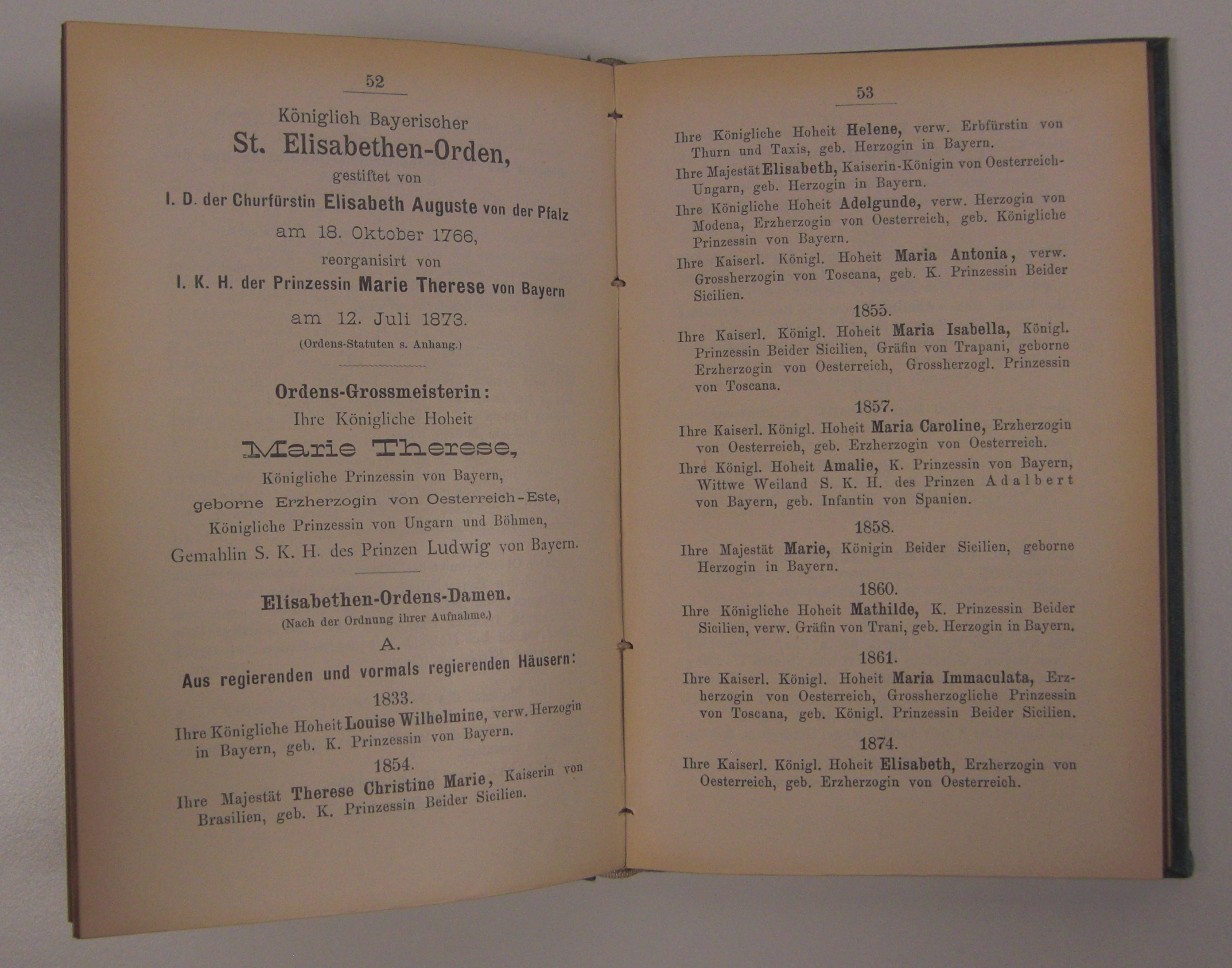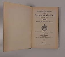 Prunkausgabe "Königlich Bayerischer adeliger Damenkalender" aus dem persönlichem Besitz des Prinzen Prinz Ludwig Ferdinand und seiner Frau Prinzessin Maria de la Paz, Infantin von Spanien aus dem Jahre 1880.