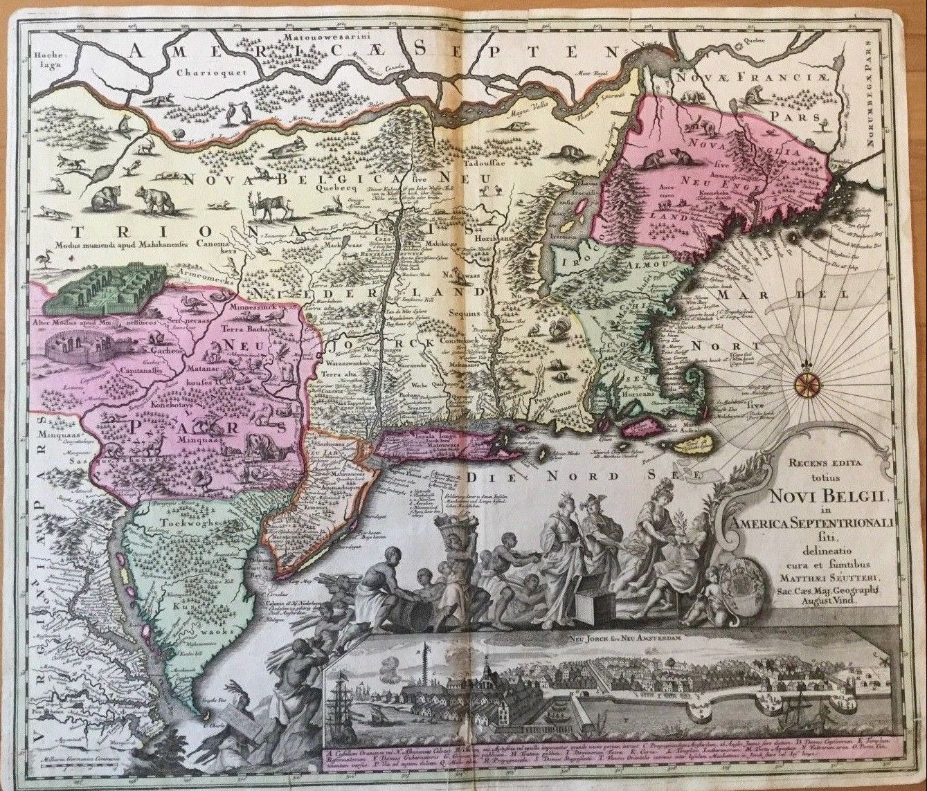 Altkolorierte Kupferstichkarte Amerika - Ostküste: