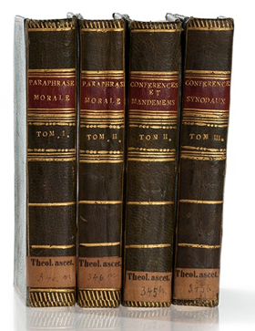 4 Bände aus der Bibliothek FRIEDRICH AUGUST DEM GERECHTEN, KÖNIG VON SACHSEN, mit Bibliotheksstempel und persönlichem Monogramm, 18./19. Jhdt. Sehr selten!